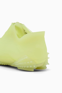 PRODUCT STORY Mostro isn't a shoe for just anyone. For over two decades, it's been worn by those who defy conventions and reject the norm. Taking its name from the Italian word for monster, Mostro is a hybrid creation that draws from two diverse realms: the sleek sprinting spikes of the '60s and the surfing shoes of the '80s. To this day, it continues to captivate with its distinctive, sculptural design, low-profile shape, and avant-garde, spiked sole. This version, the Mostro Jelly, brings a nostalgic twist with a flexible, see-through material that's perfect for the beach or turning heads on the streets. FEATURES & BENEFITS - The upper of the shoes is made with at least 20% recycled materials. - Vegan certified product. DETAILS - Style: 401667_02 - Color: Lemon Sherbert-PUMA White - Fit: Regular - Toe: Rounded - Fastener: Elasticated hook-and-loop closure system - Heel Type: Flat - Lining: Unlined - Midsole: Rubber - Outsole: Rubber - Translucent jelly upper and midsole - Rubber spikes on the sole as design detail MATERIAL INFORMATION - Sockliner: 100% Synthetic - Outsole: 60% Rubber, 40% Synthetic - Upper: 92.73% Synthetic, 7.27% Textile - Lining: 100% Synthetic