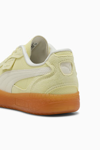 PRODUCT STORY Elevate your game with the Palermo Moda. This take on the iconic Palermo stands out with vibrant colors and a slightly raised gum sole. Cool yet classic, the Moda is an instant style staple you'll rely on. DETAILS - Style: 403375_01 - Color: Gold Moon-Warm White - Width: Regular - Toe Type: Rounded - Fastener: Laces - Heel type: Flat - Translucent rubber outsole MATERIAL INFORMATION - Sockliner: 100% Textile - Outsole: 100% Rubber - Upper: 97% Leather - cow, 3% Textile - Lining: 100% Textile