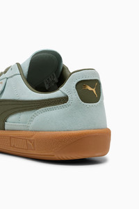 PRODUCT STORY A terrace legend from our archives returns: The Palermo. The silhouette debuted back in the early '80s, where it quickly became a staple among the terrace crowds in British soccer stadiums. Now, we’ve brought it back for the fans. Like the original, the Palermo is complete with its signature tag at the upper, a T-toe construction, and, of course, the classic gum sole. This version has a suede base and leather Formstrip with foil-printed PUMA branding. FEATURES & BENEFITS - PUMA’s leather products support responsible manufacturing via the Leather Working Group.www.leatherworkinggroup.com DETAILS - Style: 397643_51 - Color: Peaceful Blue-Loden Green - Leather upper with suede base - Suede tongue and debossed PUMA branded label and mesh backing - Synthetic lining - Synthetic sockliner - Rubber midsole - Rubber outsole MATERIAL INFORMATION - Midsole: 100% Synthetic - Sockliner: 100% Textile - Outsole: 100% Rubber - Upper: 100% Leather - cow - Lining: 100% Textile