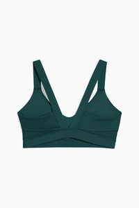 PRODUCT STORY Turn up the heat and move with confidence in this low-impact bra. Featuring moisture-wicking dryCELL technology, removable pads for a personalized fit, and unrestricted support for your studio sessions or daily flow. Designed for movement, powered by you. FEATURES & BENEFITS - dryCELL: Performance technology designed to wick moisture from the body and keep you free of sweat during exercise - Made with at least 50% recycled materials. DETAILS - Style: 527479_75 - Color: Green Terrain - Fit: Tight - Main material: Interlock - Sleeveless - Length: Regular - Removable pads - Support: low-impact sports MATERIAL INFORMATION - Strap: 62% nylon, 38% elastane - Lining: 94% polyester, 6% elastane - Shell: 77% polyester, 23% elastane
