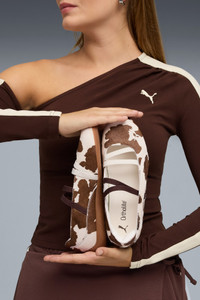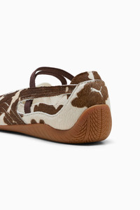 PRODUCT STORY The PUMA Speedcat has been an icon of racing culture and street style for decades. The world first knew it as an ultra-slim driving shoe designed to shave milliseconds off lap times. It then became a sleek streetwear staple seen on the streets of global fashion capitals. Its story is constantly evolving, as it's adopted by the trendsetters and pace-setters of every generation. Drawing inspiration from classic ballet flats, this version transforms the icon with a chic slip-on construction. DETAILS - Style: 407787_01 - Color: Chocolate Brown-Warm White - Regular fit - Toe: Rounded - Fastener: Slip-on with elasticated bands on instep - Heel type: Flat - PUMA branding details MATERIAL INFORMATION - Sockliner: 100% Textile - Outsole: 100% Rubber - Upper: 81.11% Coat / Fur, 18.89% Textile - Lining: 100% Textile