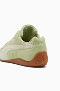 PRODUCT STORY An icon of racing culture, the PUMA Speedcat has been synonymous with speed, precision, and unparalleled performance for over 25 years. It originated as a fireproof Formula 1® footwear style, but over the decades it found itself on a new circuit – transcending the tracks of Monaco for the streets of global fashion capitals. Wrapped in soft suede and premium leather, this silhouette is reissued in its original red and black colorways with a new PUMA Cat Logo at the front. FEATURES & BENEFITS - IMEVA: PUMA's material for a lightweight and comfortable feel - PUMA's leather products support responsible manufacturing via the Leather Working Group. www.leatherworkinggroup.com DETAILS - Style: 400986_48 - Color: Pistachio Green-Warm White - Leather upper - Rubber midsole - Rubber outsole - Suede PUMA Formstrip - PUMA Cat embroidered on the toe
