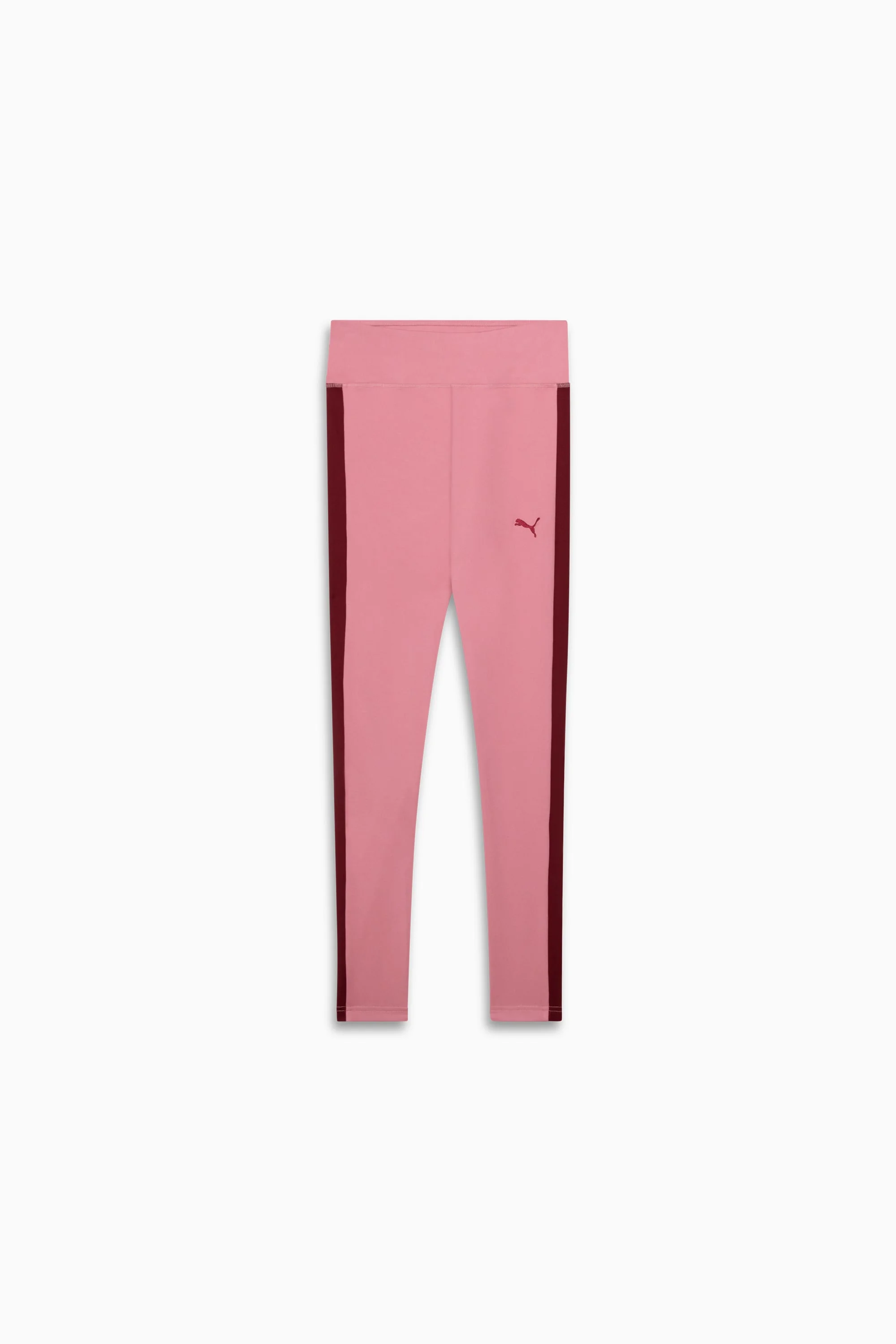 PRODUCT STORY Rock the iconic T7 stripe with these form-fitting leggings. Featuring an embroidered PUMA Cat logo and a sleek silhouette, they're perfect for everything from gym workouts to casual outings. Made with soft jersey fabric for all-day comfort, these tights bring classic PUMA style to your everyday wardrobe. FEATURES & BENEFITS - Made with at least 50% recycled materials DETAILS - Style: 633617_65 - Color: Poised Pink-Ruby Shimmer - Fit: Tight - Main Material: Single jersey - Rise: High MATERIAL INFORMATION - Gusset: 89% polyester, 11% elastane - Inserts: 89% polyester, 11% elastane - Shell: 89% polyester, 11% elastane