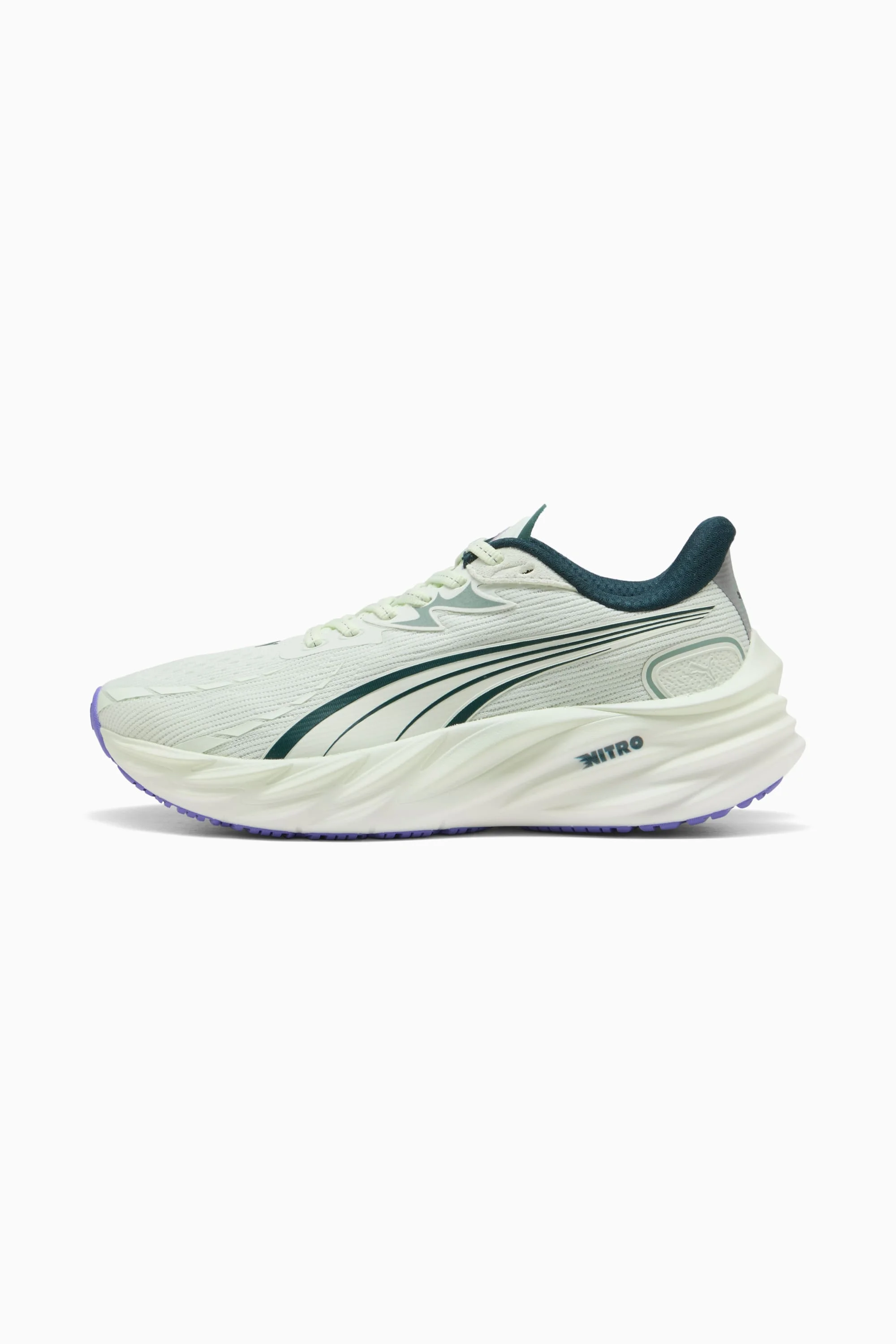 PRODUCT STORY Running feels different for everyone – and that's exactly how it should be. Whether you're chasing a personal record or just chasing the feeling, Velocity 4 is built to move with you. Any runner, any time, any distance, it can withstand, deliver, and exceed expectations. Our lightest Velocity yet, it features a full-length NITROFOAM™ midsole, improved breathability thanks to new mesh on the upper, and a PUMAGRIP outsole for the best traction in the game. FEATURES & BENEFITS - BREATHABILITY: Premium engineered knit material engineered for breathability and stretch, reinforced with PWRTAPE for durability and lockdown - NITROFOAM™: Innovative nitrogen-infused foam technology that uses premium raw materials to provide maximum energy return - PUMAGRIP: Outsole is made of durable rubber compound for multi-surface traction - The upper of the shoes is made with at least 30% recycled materials. DETAILS - Style: 311141_10 - Color: Sage Frost-Green Terrain - Fit: Regular - Toe type: Rounded - Fastener: Laces - Heel type: Flat - Heel-to-toe drop: 10mm - Stack height 36mm / 26mm - Recommended for: neutral pronators MATERIAL INFORMATION - Sockliner: 100% Textile - Outsole: 100% Rubber - Upper: 59.73% Textile, 37.40% Synthetic, 2.87% Leather - cow - Lining: 100% Textile
