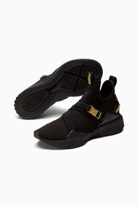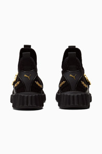 Defy doesn't really "do" status quo. Fusing a provocative mid-height sock collar with training tech, this trainer kicks serious a-- in and out of the gym. A high rebound foam sole adds comfort while a fully knitted upper offers a flexible fit. Flecks of gold and metallic cross straps take Defy from MVP status to certified gold. MATERIAL INFORMATION - Midsole: 100% Synthetic - Sockliner: 100% Textile - Outsole: 100% Rubber - Upper: 86% Textile, 14% Synthetic - Lining: 100% Textile