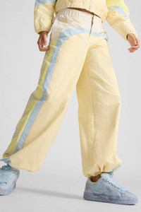 PRODUCT STORY The ultimate in ‘track-meet chic’ the PUMA x COLLINA STRADA parachute pants feature an ultra-baggy fit, a bright pastel pattern, and elastic closures at the ankles for an extra sporty shape. FEATURES & BENEFITS - 92% recycled nylon, 8% elastane - windCELL: highly functional materials that provide a durable yet breathable protection against wind chill, while helping maintain body temperature during exercise DETAILS - Style: 628224_33 - Color: Creamy Vanilla - Elastic waistband with front zipper - Adjustable bungee cords at hem - Side pockets - Snap button closure - Full length - Open bottom - Low trouser rise - Relaxed fit - Regular length MATERIAL INFORMATION - LINING: 100% polyester - SHELL: 92% nylon, 8% elastane - POCKET BAG: 100% polyester