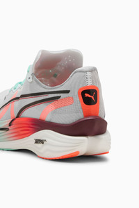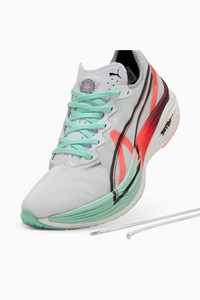 PRODUCT STORY Take your top speed to a level you never imagined with the Deviate NITRO™ Elite 3 HYROX. Worn by road racers and the world’s fastest HYROX athletes, it’s engineered and tested to be the ultimate race day shoe. It features NITROFOAM™ ELITE for best-in-class responsiveness and energy return, plus a stiff carbon fiber PWRPLATE for a powerfully responsive ride to make racing feel even more effortless. This pair features oversized PUMA x HYROX branding so you can rep the sport in style. FEATURES & BENEFITS - NITROFOAM™ ELITE: Innovative nitrogen-infused foam technology that uses the most cutting-edge materials for lightweight responsiveness and performance on race day - PWRPLATE: Full-length carbon fiber plate for powerful propulsion and elite efficiency - ULTRAWEAVE: Premium lightweight material engineered for breathability - PUMAGRIP: Outsole is made of durable rubber compound for multi-surface traction DETAILS - Style: 312292_01 - Color: PUMA White-Glowing Red-Mint Melt - Fit: Regular - Toe type: Rounded - Fastener: Laces - Heel type: Flat - Heel-to-toe drop: 8.0mm - Stack height: 40mm / 32mm - Recommended for neutral pronators MATERIAL INFORMATION - Midsole: 100% Synthetic - Sockliner: 100% Textile - Outsole: 87% Rubber, 13% Synthetic - Upper: 84% Textile, 16% Synthetic - Lining: 100% Textile
