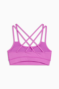 PRODUCT STORY Feel the freedom to move with this low-impact strappy bra. Featuring dryCELL technology to keep you dry, removable padding, and breathable lining for versatility. Embrace every workout with confidence and style. FEATURES & BENEFITS - Made with at least 50% recycled materials - dryCELL: Performance technology designed to wick moisture from the body and keep you free of sweat during exercise DETAILS - Style: 527161_73 - Color: Electric Orchid - Tight fit - Interlock material - Regular length - Removable padding - PUMA x HYROX co-branding details MATERIAL INFORMATION - Lining: 94% polyester, 6% elastane - Shell: 85% polyester, 15% elastane - Cup Lining: 94% polyester, 6% elastane