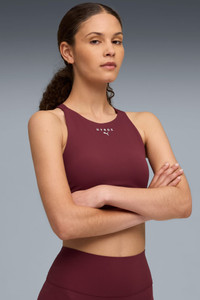 PRODUCT STORY The ultimate fitness race requires the ultimate gear. PUMA x HYROX is back for another round, with new designs specially curated for HYROX athletes. Whether you’re gearing up for your first HYROX event or chasing a new personal best, every piece of this collection is made to meet the intensity of the competition. FEATURES & BENEFITS - dryCELL: Performance technology designed to wick moisture from the body and keep you free of sweat during exercise - EVERSCULPT: Shape-enhancing activewear with compressive sculpting fabric and body contouring designs that smooth and support without restricting movement - Made with at least 50% recycled materials. DETAILS - Style: 527854_96 - Color: Ruby Shimmer - Fit: Tight - Main material: Interlock - Adjustable straps - High-neck coverage - High support built for high intensity workouts - Length: Regular - Removable pads - Breathable lining MATERIAL INFORMATION - Lining: 94% polyester, 6% elastane - Shell: 82% nylon, 18% elastane