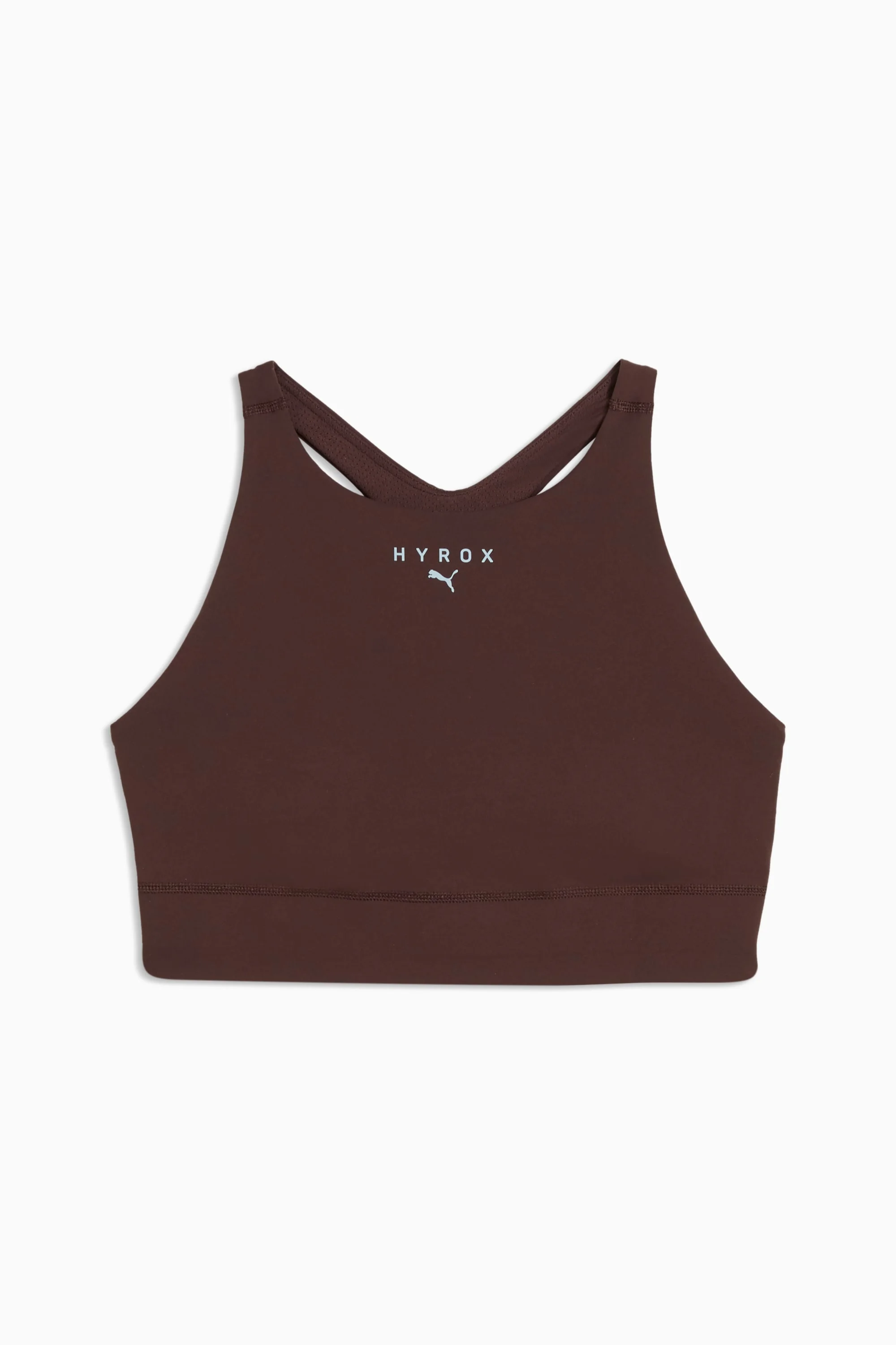 PRODUCT STORYThe ultimate fitness race requires the ultimate gear. PUMA x HYROX is back for another round, with new designs specially curated for HYROX athletes. Whether you’re gearing up for your first HYROX event or chasing a new personal best, every piece of this collection is made to meet the intensity of the competition.FEATURES & BENEFITS- SHAPELUXE - Smoothing, supportive and soft shapeluxe delivers a premium handfeel with movable compression. A double jersey knit with ultra fine yarns, you have to feel it to believe it. - dryCELL: Performance technology designed to wick moisture from the body and keep you free of sweat during exercise - LYCRA®ADAPTIV fiber in an innovative, engineered seamless construction delivers on fit and shape retention while providing form-fitting compression that moves with you. - Made with at least 50% recycled materials. DETAILS- Fit: Tight - Main material: Interlock - Adjustable straps - High-neck coverage - High support built for high intensity workouts - Length: Regular - Removable pads - Breathable lining MATERIAL INFORMATION - Lining: 94% polyester, 6% elastane - Shell: 82% nylon, 18% elastane