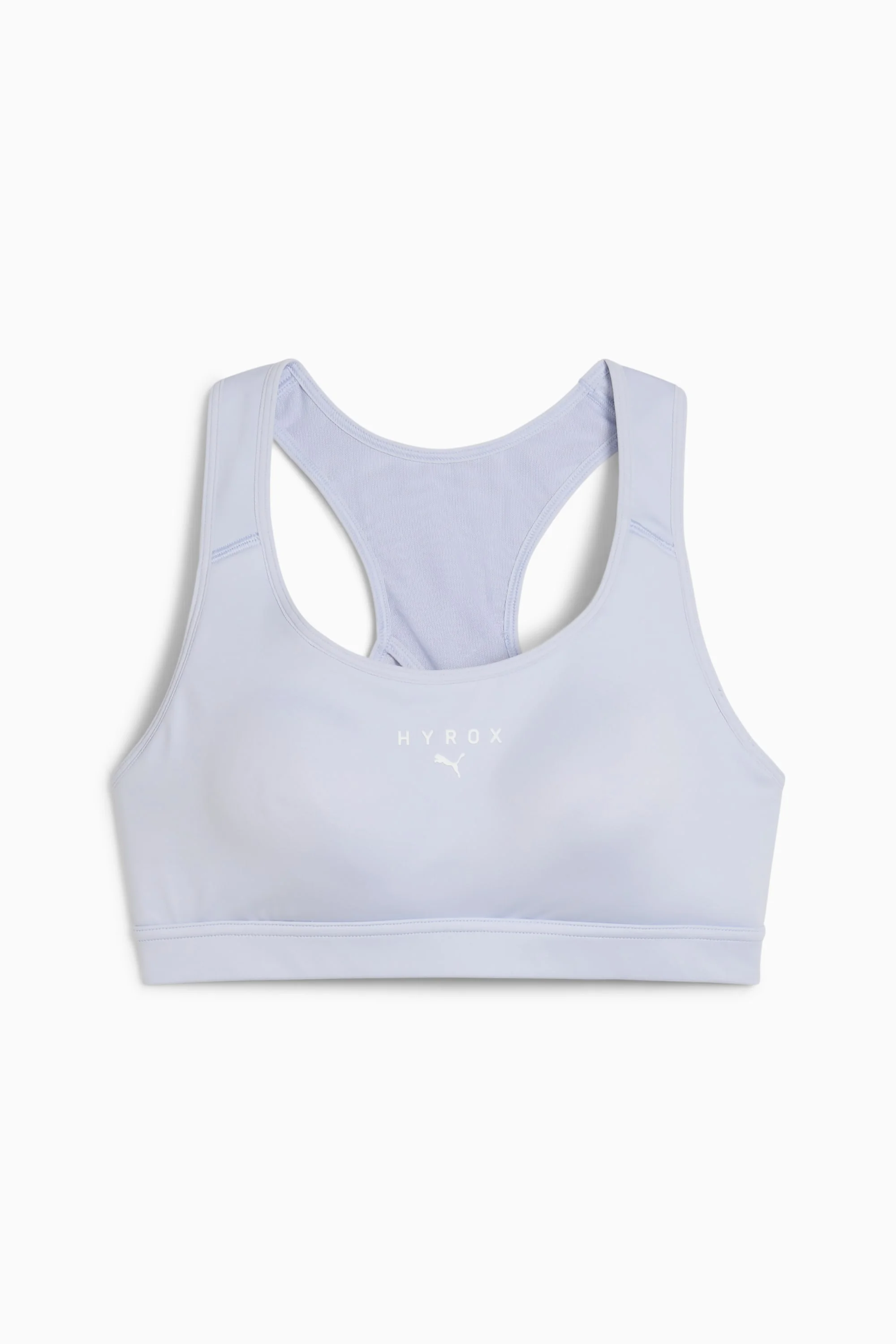 PRODUCT STORY Take your HYROX training and competition to the next level with this mid-impact bra. Featuring sweat-wicking dryCELL material, this high-performance bra is engineered to support you through the most dynamic HYROX movements without sacrificing comfort. Get ready to join the global HYROX movement with the PUMA x HYROX Mid-Impact Bra. FEATURES & BENEFITS - Made with at least 50% recycled materials - dryCELL: Performance technology designed to wick moisture from the body and keep you free of sweat during exercise DETAILS - Style: 526901_47 - Color: Cool Weather - Tight fit - Tricot - Regular length - Sleeveless - PUMA x HYROX co-branding details MATERIAL INFORMATION - Back Body: 87% polyester, 13% elastane - Lining: 94% polyester, 6% elastane - Shell: 77% polyester, 23% elastane - Cup Lining: 79% polyester, 21% elastane