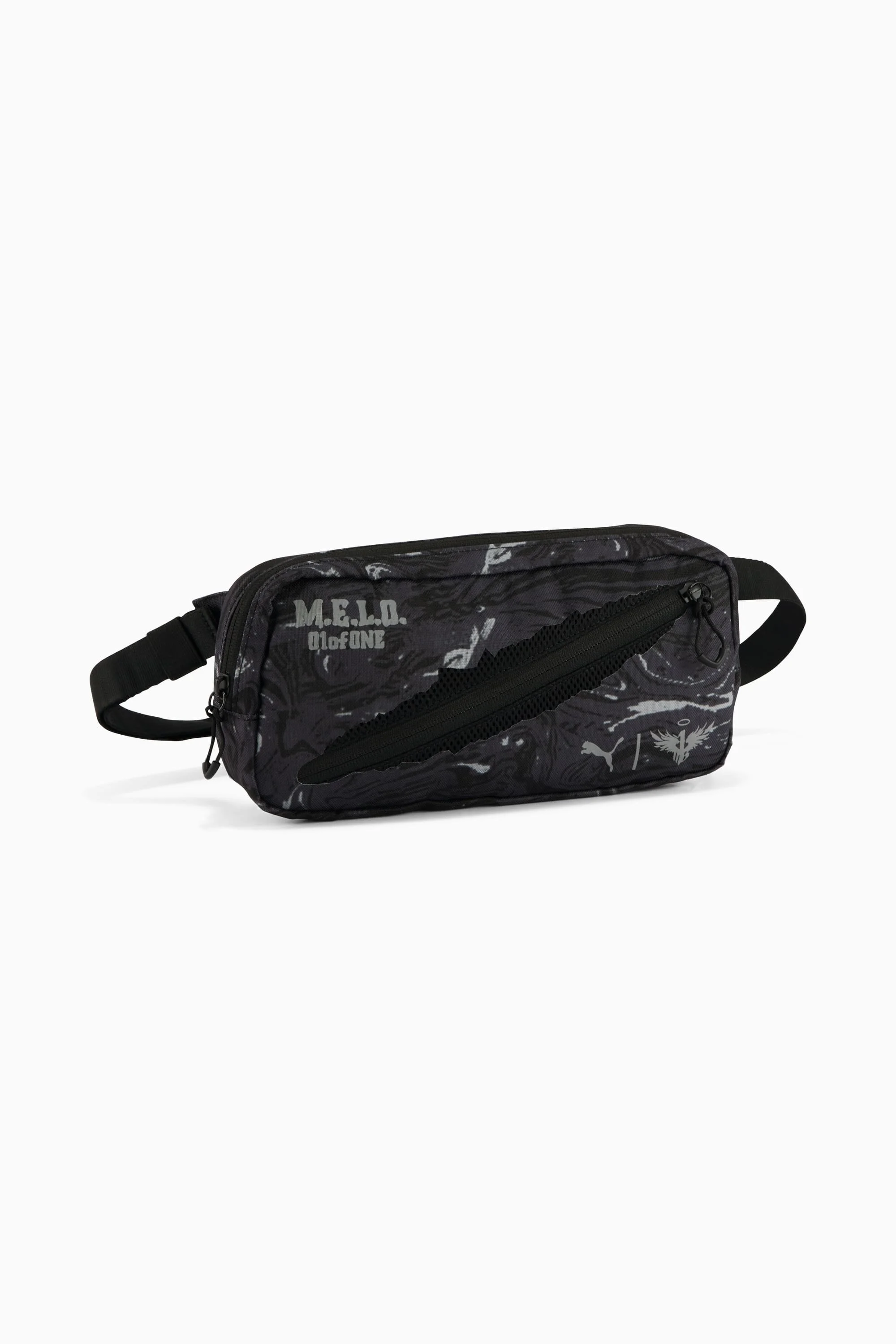 PRODUCT STORY Like everything Melo, we've gone a little wild with this crossbody bag. It has a standard zip opening main compartment and a slip-in pocket inside of that. Wear it on your waist or around your shoulder. On the front, is a reflective M.E.L.O. wording, and the entire thing is covered in a colourful all-over-print. DETAILS - Style: 090385_01 - Color: PUMA Black - Zip main compartment - Slip-in pocket inside the main compartment - Zip front pocket - Padded back panel - Adjustable strap - Reflective logo - All-over-print - PUMA x LaMelo co-branding - 28 x 5.20 x 13 cm, 5 L MATERIAL INFORMATION - Lining: 100% polyester - Shell: 100% polyester