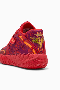 PRODUCT STORY LaMelo Ball’s latest signature drop, MB.05 Crowd Surf, is fueled by his rockstar status and the fans who ride with him. This drop is for the ones who bring the noise, whether they’re in the stands or lacing up themselves. Dressed in a bold red tie-dye upper, the Crowd Surf is unmissable with sculpted overlays, moulded barbed wire details, and Melo’s signature touches throughout – from the gold wing straps on the heel to the moulded “1” and skull on the outsole. FEATURES & BENEFITS - NITROFOAM™: Advanced nitrogen-injected foam designed to provide superior responsiveness and cushioning in a lightweight package - The upper of the shoes is made with at least 20% recycled materials. DETAILS - Style: 312132_01 - Color: PUMA Red-Magenta Gleam-Fluro Orange Pes - Regular fit - Rounded toe - Lace closure - Heel type: Flat - High abrasion tread pattern for added traction - Mesh details on the vamp for breathability and lockdown support - Internal heel cage provides heel lockdown and lateral stability - Moulded gold wing straps wrap around the heel - Moulded skull and ‘1’ on the outsole - Engineered mesh uppper with tie-dye print