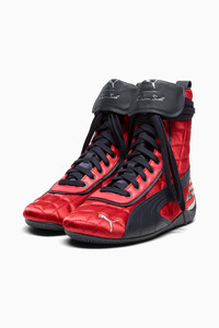 PRODUCT STORY Enter the ring with PUMA x LAQUAN SMITH, inspired by the glitz and glisten of the boxing world. LaQuan Smith reinvents the iconic Speedcat in this new collection. With the Speedcat Mid, the icon of the racing scene is reinvented into a high-ankle boxing sneaker. Details like silver laces and LaQuan’s signature on the heel make this Speedcat a knockout. DETAILS - Style: 402326_01 - Color: For All Time Red-PUMA Black - Mid boot - Satin upper - Lace closure - Rubber outsole - Regular fit - PUMA x LAQUAN SMITH co-branding details