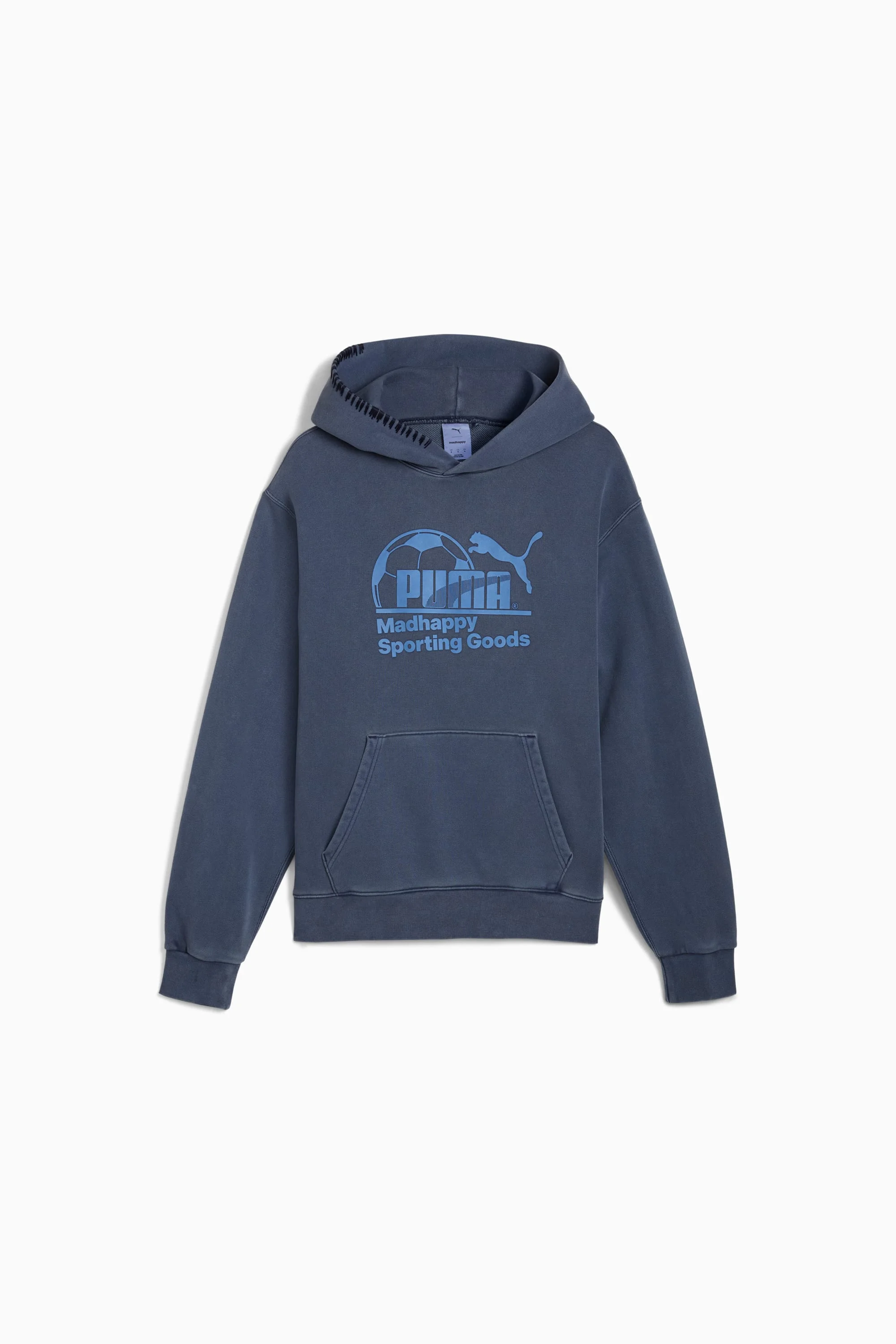 PRODUCT STORY PUMA x Madhappy bridges iconic sport style with thoughtful, optimistic presence. Anchored by the first collaborative iteration of PUMA’s Speedcat Plus, reimagined with soft suede, premium leather, and Madhappy's signature stitch detail, this collection features an assortment of tracksuits, knitwear, pointelle jerseys, fleece, and tees. DETAILS - Style: 635339_06 - Color: PUMA Navy - Fit: Relaxed - Main Material: Fleece - Hooded - Long sleeves - Pockets: Kangaroo Pocket MATERIAL INFORMATION - Shell: 100% cotton - Rib: 97% cotton, 3% elastane