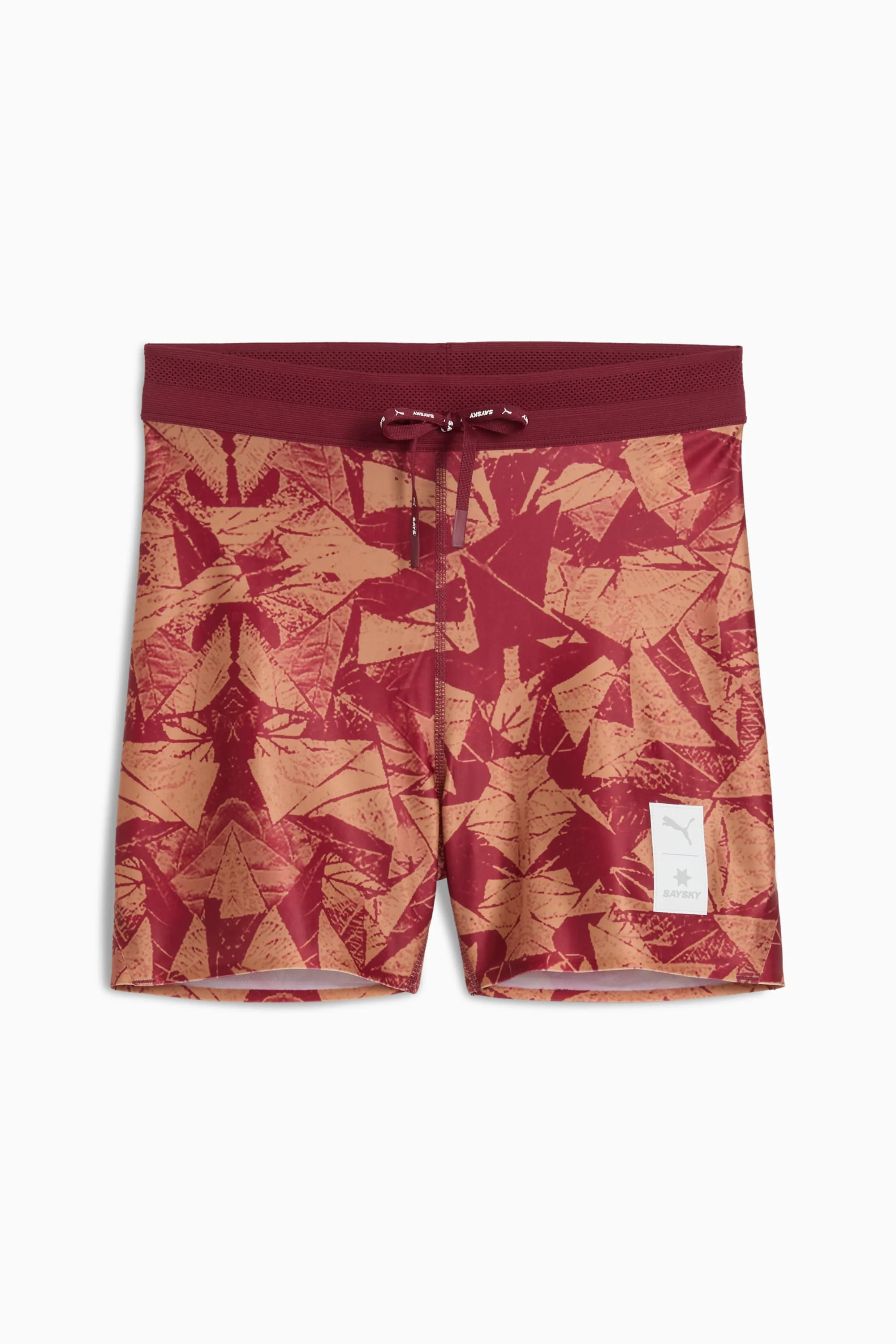PRODUCT STORY Race day is about more than just the run – it’s a celebration of community, culture, and shared energy. Whether you’re chasing a PR or cheering from the sidelines, the latest PUMA x SAYSKY collection captures the spirit of the sport. Rooted in unity, the collection’s bold, sharp silhouettes capture the discipline and power of the pack - designed to make runners feel unstoppable, together. Collection pieces blend SAYSKY’s bold design language with PUMA’s cutting-edge running technology. The capsule also includes travel-ready essentials made for getting to and from the course. From race to recovery, it’s everything you need to tackle a race weekend in style. FEATURES & BENEFITS - MOISTURE MANAGEMENT: Technical dryCELL fabrics wick moisture away from the skin to help keep you dry and comfortable DETAILS - Style: 527834_90 - Color: Team Regal Red-AOP - Regular fit - Tricot material - Above knee length - High rise - PUMA x SAYSKY co-branding details MATERIAL INFORMATION - Shell: 78% polyester, 22% elastane