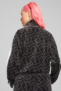 PRODUCT STORY Let the games begin. The PUMA x SQUID GAME collection is finally here, blending PUMA's effortless sport-style with the DNA of the mega-hit TV series. Classic footwear, accessories, and apparel – including this T7 jacket – are transformed with elements from the show, including Red Light Green Light and the stairs room. FEATURES & BENEFITS - Made with at least 20% recycled materials. DETAILS - Style: 627432_01 - Color: PUMA Black - Regular fit - 260gsm, velour - Stand up collar - Long sleeves - Full-zip closure with a customised zip-pull representing the SQUID GAME stairs - Front welt pockets - Contrast T7 panel inserts on the sleeves - Tonal all-over print inspired by the iconic stairs room - PUMA x SQUID GAME co-branding details MATERIAL INFORMATION - INSERTS: 74% cotton, 24% polyester, 2% elastane - UPPER POCKET BAG: 100% cotton - SHELL: 74% cotton, 24% polyester, 2% elastane