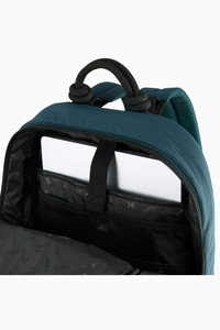 PRODUCT STORY Elevated Sportswear. Designed Beyond Labels. Leave labels behind with PUMA.BL, a collection of accessories created to celebrate every individual for who they are, not how others label them. Simple yet distinct, easy to wear, yet impossible to categorize. FEATURES & BENEFITS - Made with at least 90% recycled materials. DETAILS - Style: 091850_01 - Color: Green Terrain - Two-way zip opening into main compartment - Front zip pocket - Fleece lined phone pocket on side seam for easy access - Internal padded laptop sleeve (up to 15'') - Multiple internal slip-in pockets - Padded mesh back panel for breathability - Strap on back side to attach to trolley - Chunky rope carry handle on top - Volume: 27L, Dimensions: H45cm x W32cm x D16.5cm - Padded, adjustable shoulder straps MATERIAL INFORMATION - Shell: 100% nylon - Mesh: 100% polyester