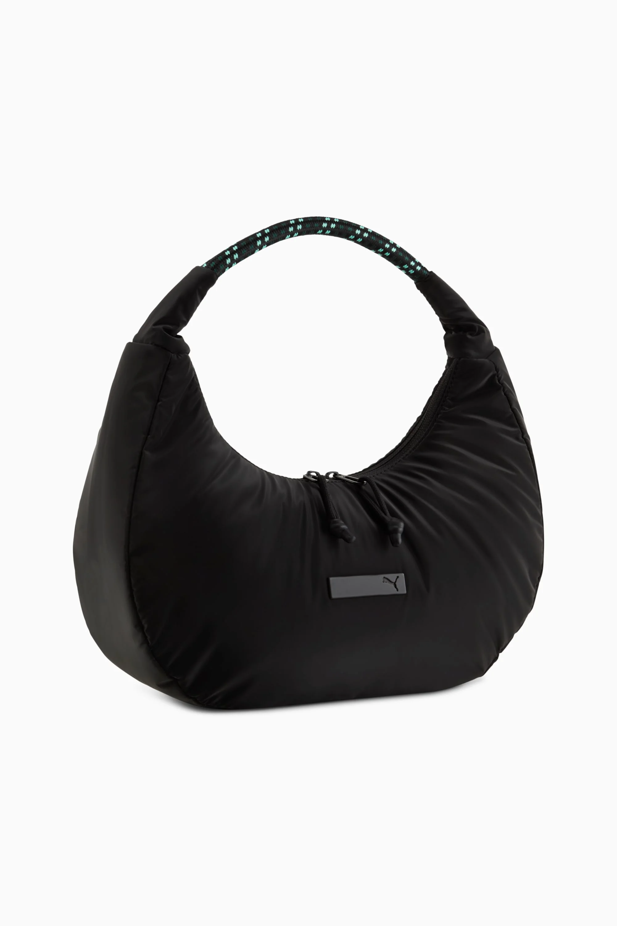PRODUCT STORY Step into the future with this luxe-meets-sport hobo bag. Featuring a chunky rope shoulder strap, rich metal branding, and an internal zip pocket, it's perfect for making a statement. Embrace the evolution with PUMA's signature flair. FEATURES & BENEFITS - Made with at least 50% recycled materials DETAILS - Style: 091367_01 - Color: PUMA Black - Two-way zip opening into main compartment - Internal zip pocket - Chunky rope shoulder strap - Embossed lining - Rich metal branding - PUMA branding details MATERIAL INFORMATION - Lining: 100% polyester