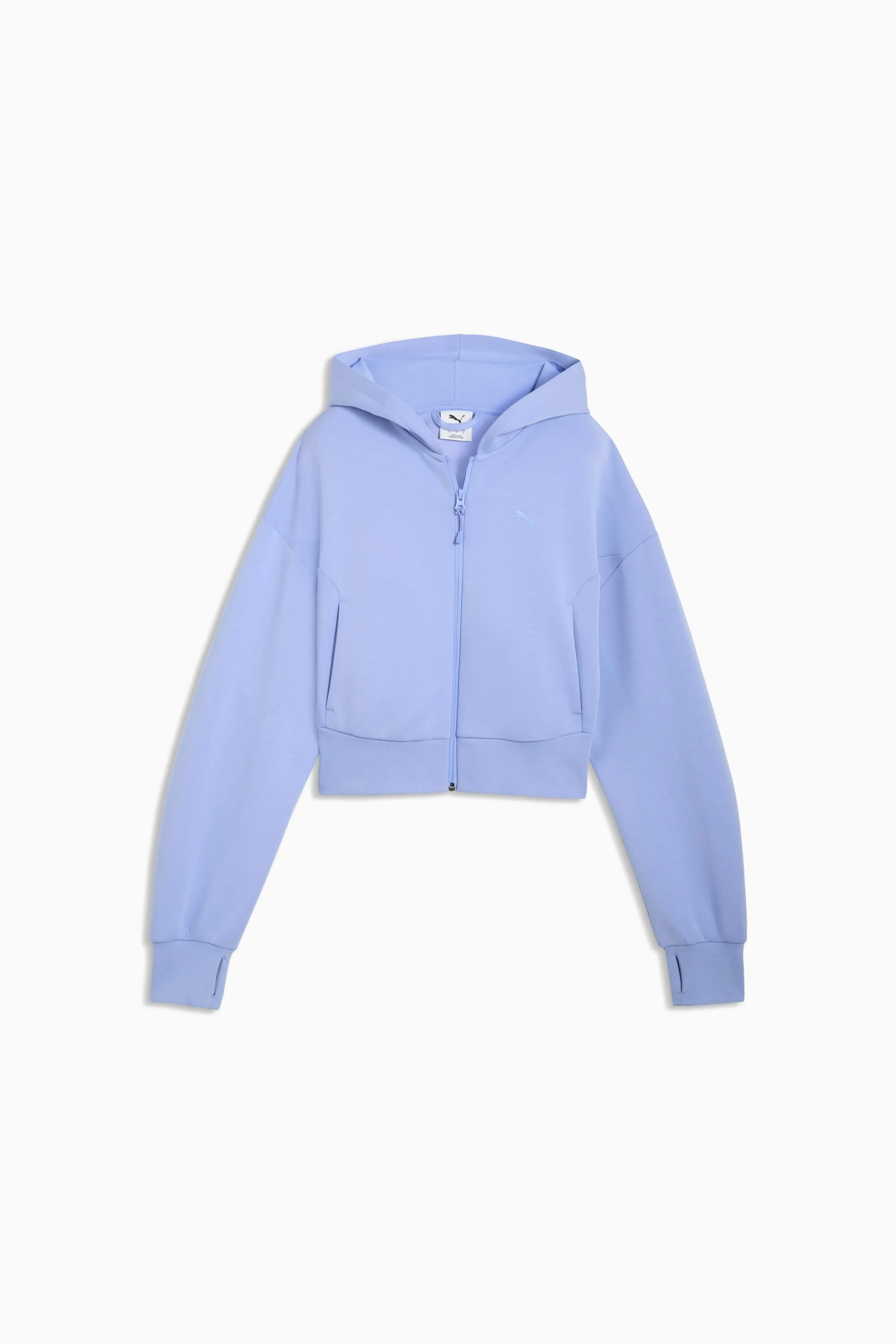 PRODUCT STORY The technical streetwear line PUMATECH is back once again. Designs explore visible functionality and a techy aesthetic for a capsule that’s both street-ready and practical. This hoodie has thumbholes at the cuffs to help keep hands warm on chilly days. FEATURES & BENEFITS - UV Protection +50 - MOISTURE MANAGEMENT: Technical dryCELL fabrics wick moisture away from the skin to help keep you dry and comfortable - Made with at least 30% recycled materials. DETAILS - Style: 634571_60 - Color: Intense Lavender - Fit: Comfort - Main material type: Spacer - Hooded - Long sleeves - Closure: Full zip - Length: Short MATERIAL INFORMATION - Hood Lining: 100% cotton - Shell: 50% polyester, 25% Modal, 16% cotton, 9% elastane - Pocket Bag: 100% cotton - Rib: 96% cotton, 4% elastane