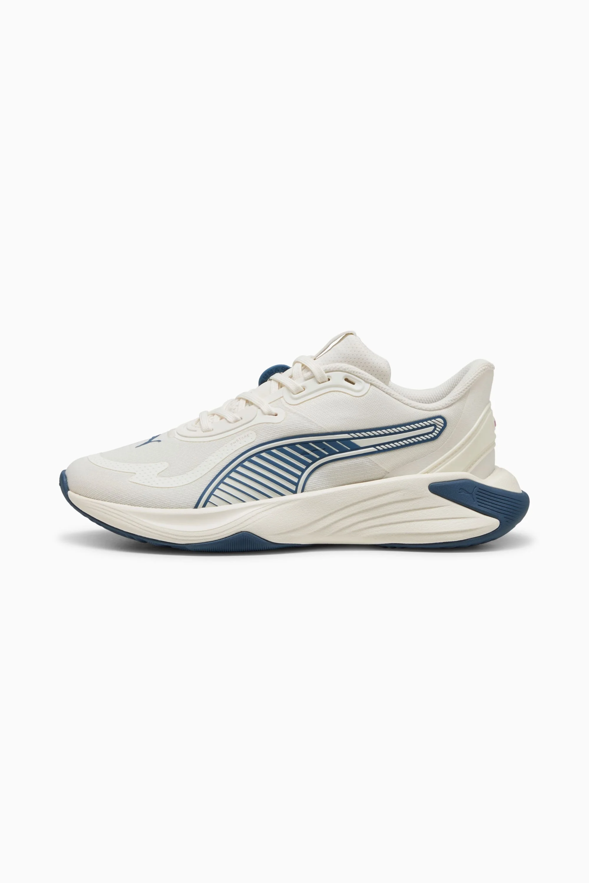 PRODUCT STORY Introducing your new go-to training shoe, the PWR Hybrid TR. This latest footwear innovation is made with PUMAGRIP for best-in-class traction and PROFOAM for unparalleled comfort during long sessions. Start your next workout off on the right foot in PWR Hybrid TR. FEATURES & BENEFITS - The upper of the shoes is made with at least 30% recycled materials - PUMAGRIP: Durable performance rubber compound designed for all-surface traction - PWRTAPE: Targeted upper reinforcement for support and durability - PROFOAM: Lightweight EVA designed to cushion your landing and propel your next step DETAILS - Style: 310477_09 - Color: Warm White-Dark Indigo-Poised Pink - Regular width - Textile upper - Lace closure - Heel-to-toe drop: 8mm - Recommended for: neutral pronators - PUMA branding details MATERIAL INFORMATION - Midsole: 100% Synthetic - Sockliner: 100% Textile - Outsole: 100% Rubber - Upper: 55% Textile, 45% Synthetic - Lining: 100% Textile