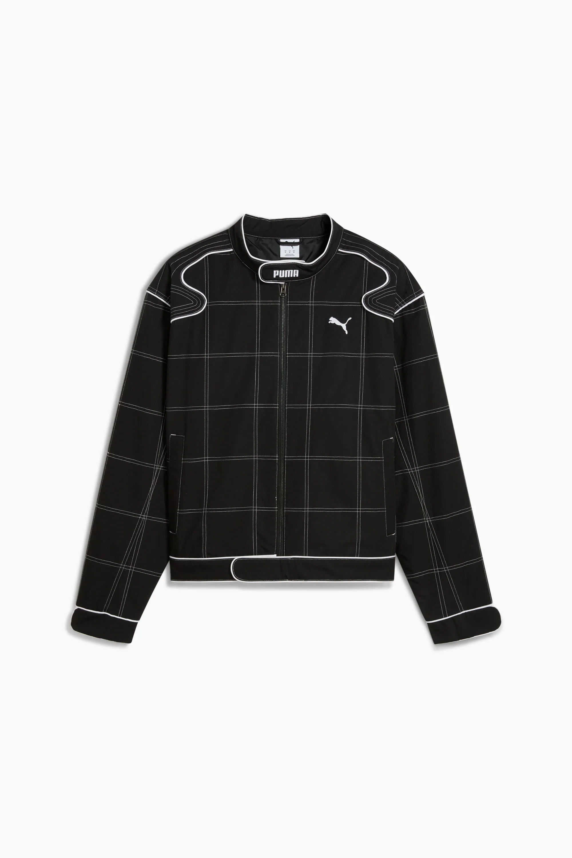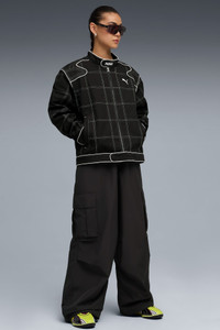 PRODUCT STORY This is the FUTURE.PUMA.ARCHIVE. This street-inspired collection blends the spirit of our past with the limitless possibilities of our future. Retro yet modern, these styles are here to make a statement. FEATURES & BENEFITS - Made with at least 50% recycled materials. DETAILS - Style: 632163_01 - Color: PUMA Black - Fit: Oversized - Main material: Ripstop - Neck: Stand-up collar with hook-and-loop closure - Long sleeves with adjustable hook-and-loop detail on the cuffs - Fastener: Full zip - Length: Regular - Hook-and-loop detail on the hem - Pockets: Welt pockets with inner zipper MATERIAL INFORMATION - Lining: 100% polyester - Shell: 60% cotton, 40% polyester - Filling: 100% polyester