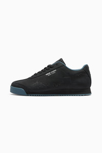 PRODUCT STORY The City That Never Sleeps is all over these Roma sneakers. With an NYC skyline graphic and cool colorway, these kicks are made to turn heads. The classic Roma silhouette gives these sneakers their timeless look, while orthopedic arch support makes them a comfortable choice. Lace up and hit the boroughs in style. DETAILS - Style: 400841_01 - Color: PUMA Black-PUMA Silver-Gray Skies - Low boot - Lace closure - Suede upper - Leather overlays - EVA midsole - Regular fit - PUMA branding details MATERIAL INFORMATION - Sockliner: 100% Textile - Outsole: 100% Rubber - Upper: 97.62% Leather - cow, 2.38% Textile - Lining: 100% Textile