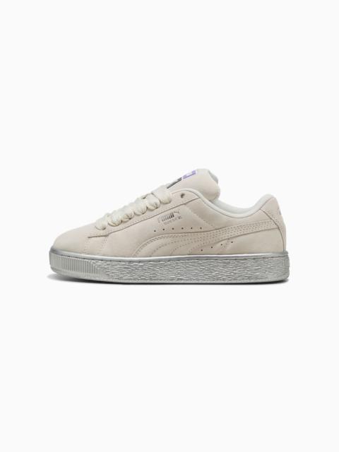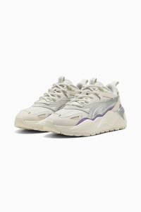 PRODUCT STORY RS-X is back. This future-retro silhouette made waves when it dropped in 2018, celebrated for its disruptive design, fresh material mixes, and bold colors. Today, RS-X returns for a new generation of consumers who live to express their individuality. This version with its metallic leather PUMA Formstrip with debossed lines will turn heads is you strut down the street. FEATURES & BENEFITS - The upper of the shoes is made with at least 20% recycled materials. DETAILS - Style: 401595_01 - Color: Vapor Gray-PUMA Silver - Synthetic and textile upper - Textile insole - Lace closure - Synthetic outsole - PUMA branding details MATERIAL INFORMATION - Midsole: 100% Synthetic - Sockliner: 100% Textile - Outsole: 100% Rubber - Upper: 44% Leather - cow, 30% Textile, 25% Reconstituted Leather, 1% Synthetic - Lining: 100% Textile