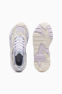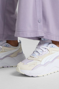 PRODUCT STORY RS-X is back. This future-retro silhouette made waves when it dropped in 2018, celebrated for its disruptive design, fresh material mixes, and bold colours. Today, RS-X returns for a new generation of consumers who live to express their individuality. It's here to start a revolution of self-expression. This version features a textile upper, nubuck and synthetic overlays, and a synthetic PUMA Formstrip with debossed and printed lines. FEATURES & BENEFITS - The upper of the shoes is made with at least 20% recycled materials DETAILS - Style: 398500_05 - Color: Warm White-Lilac Frost - Regular fit - Textile upper - Nubuck overlays on vamp, quarter, and heel; synthetic overlays on tongue, eyestay, and heel - Mesh lining - Lace closure - EVA midsole - Rubber outsole - Synthetic PUMA Formstrip with debossed and printed lines - TPU top eyelet - PUMA branding details MATERIAL INFORMATION - Midsole: 100% Synthetic - Sockliner: 100% Textile - Outsole: 100% Rubber - Upper: 43% Synthetic, 38% Leather - cow, 19% Textile - Lining: 100% Textile