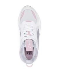 RS-X panelled sneakers Highlights - White/grey/pink - Panelled design - Mesh panelling - Logo patch at the tongue - Logo print to the side - Pull-tab at the heel - Padded ankle - Branded insole - Rubber sole Imported Composition Outer: Fabric 44%, other fibers 32%, Bovine Leather 24% Lining: Fabric 100% Sole: Synthetic Rubber 100% SIZE & FIT Measurement HEEL 1.77 in(4.5 cm) Sole height 1.18 in(3 cm)