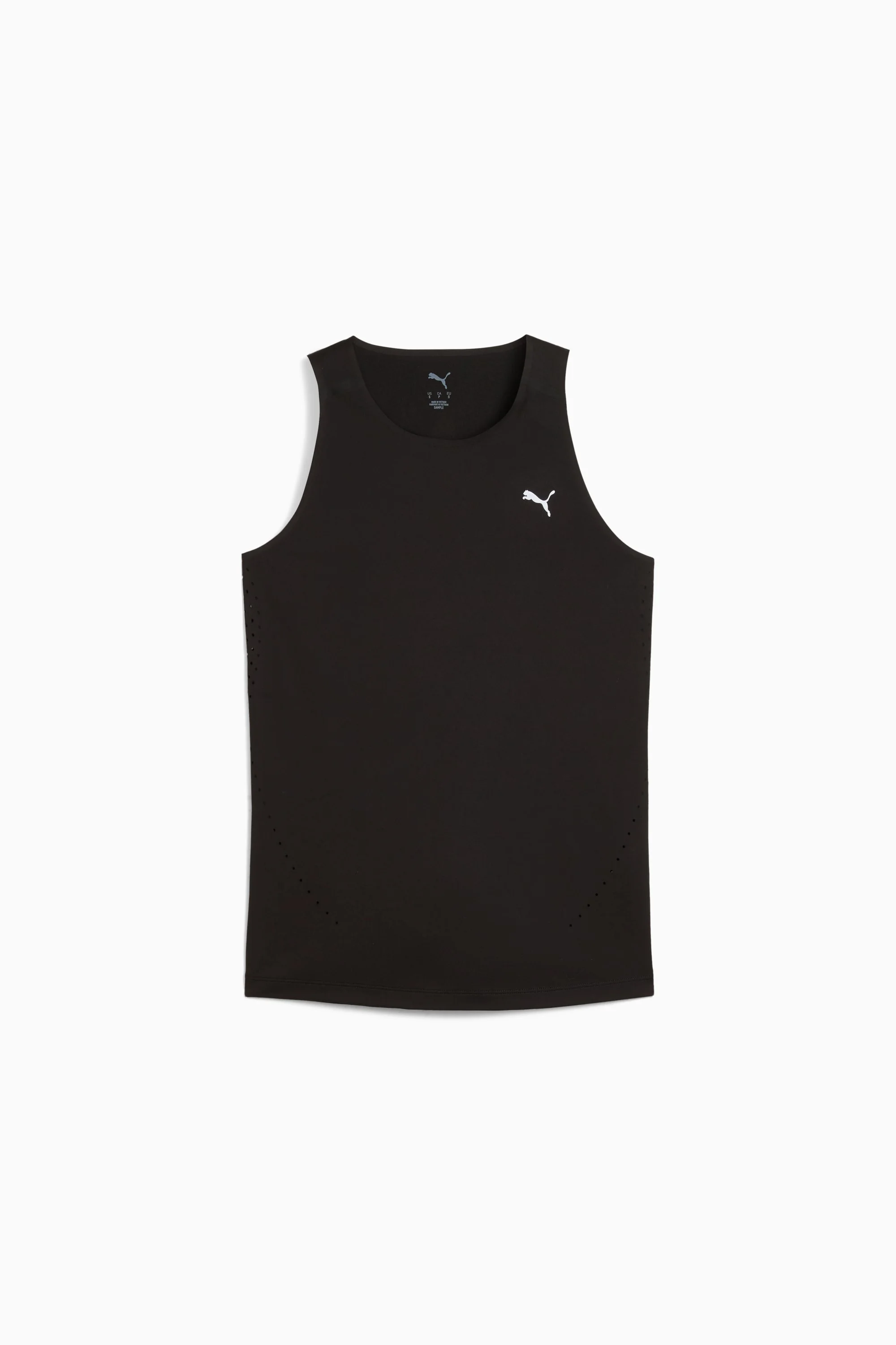 PRODUCT STORY Feel unstoppable in this ultra-soft PUMA tank. Featuring CLOUDSPUN fabric for peak performance, laser perforations for breathability, and bonded seams for reduced friction. Thermoadapt technology keeps you cool as you conquer your run. Embrace every stride with confidence. FEATURES & BENEFITS - Made with at least 90% recycled materials - dryCELL: Performance technology designed to wick moisture from the body and keep you free of sweat during exercise - CLOUDSPUN: Custom-milled performance poly/spandex blend, this fabric meets the highest performance standards while still feeling like an ultra soft cotton - Thermoadapt: HeiQ smart temp is a thermos regulation technology that provides fabrics with the ability to dynamically respond to body heat DETAILS - Style: 526658_01 - Color: PUMA Black - Regular fit - Single jersey material - Regular length - Crew neck - Sleeveless - PUMA branding details MATERIAL INFORMATION - SHELL: 94% polyester, 6% elastane