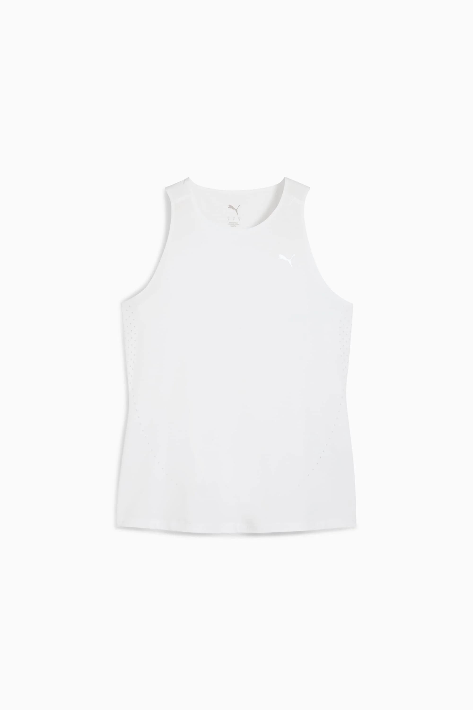 PRODUCT STORY Feel unstoppable in this ultra-soft PUMA tank. Featuring CLOUDSPUN fabric for peak performance, laser perforations for breathability, and bonded seams for reduced friction. Thermoadapt technology keeps you cool as you conquer your run. Embrace every stride with confidence. FEATURES & BENEFITS - Made with at least 90% recycled materials - dryCELL: Performance technology designed to wick moisture from the body and keep you free of sweat during exercise - CLOUDSPUN: Custom-milled performance poly/spandex blend, this fabric meets the highest performance standards while still feeling like an ultra soft cotton - Thermoadapt: HeiQ smart temp is a thermos regulation technology that provides fabrics with the ability to dynamically respond to body heat DETAILS - Style: 526658_02 - Color: PUMA White - Regular fit - Single jersey material - Regular length - Crew neck - Sleeveless - PUMA branding details MATERIAL INFORMATION - Shell: 94% polyester, 6% elastane