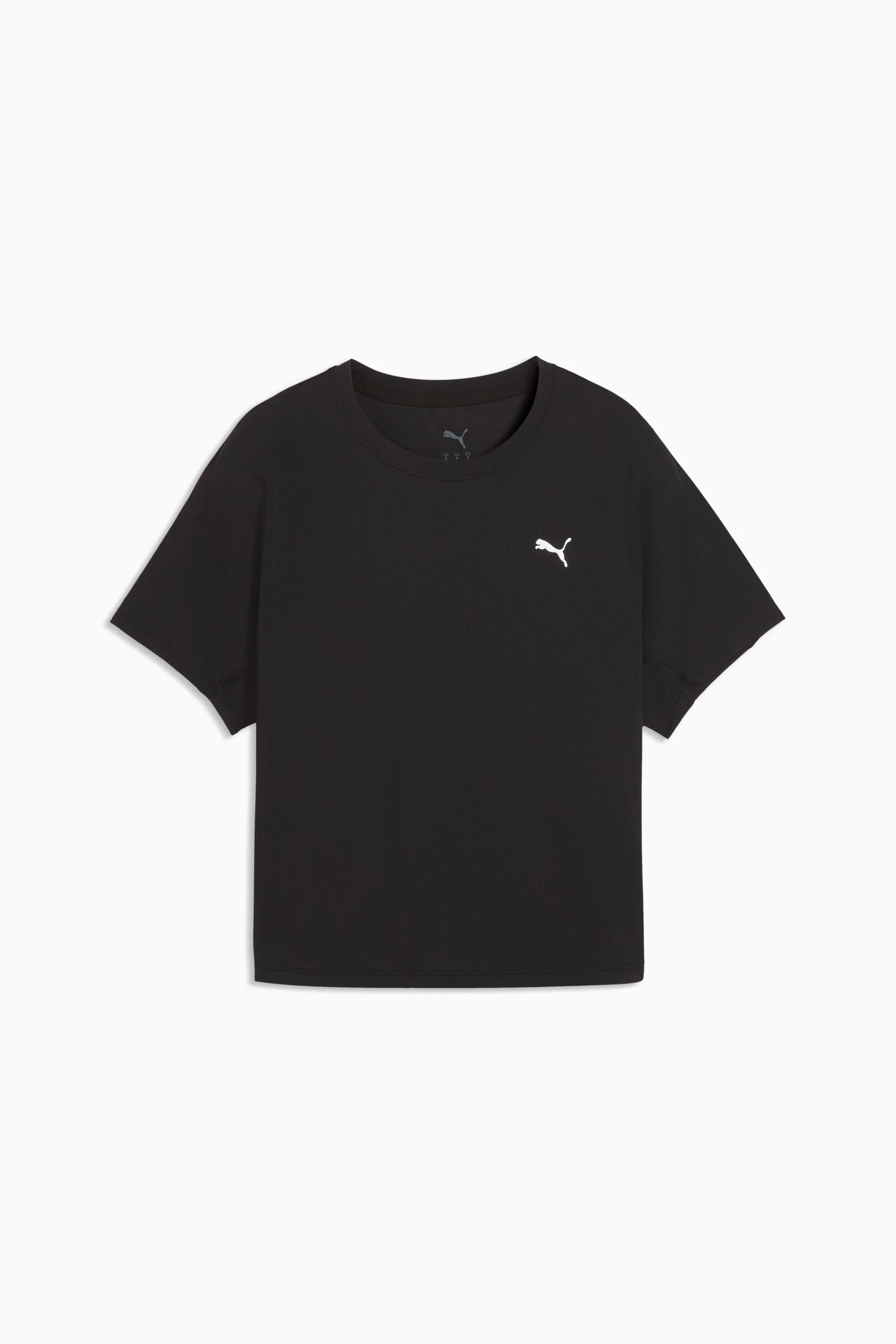 PRODUCT STORY Make every run your own in this running tee. Technical fabric delivers an instant cooling sensation to help you stay the course when the sun’s out. The boxy fit and considered details give you a fresh silhouette. You feel confident, cool, and ready for every kilometre. FEATURES & BENEFITS - Made with at least 50% recycled materials. DETAILS - Style: 528430_01 - Color: PUMA Black - Fit: Boxy - Main material type: Pique - Neck: Crew neck - Short sleeves - Length: Cropped MATERIAL INFORMATION - Shell: 82% nylon, 18% elastane