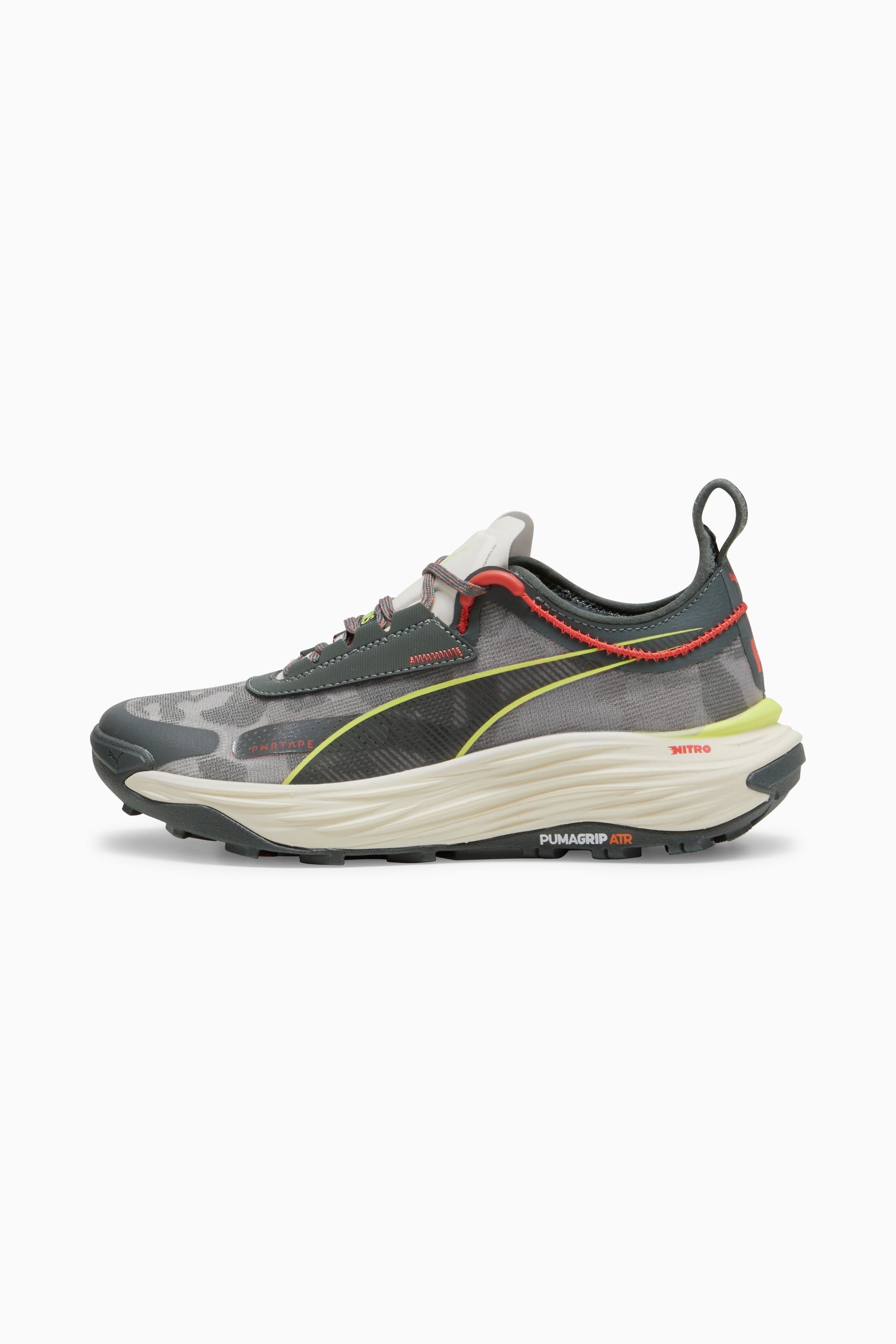 PRODUCT STORY Tackle any terrain in the sturdy confines of the Voyage NITRO™ 3. In this updated version of the model, we’ve tooled the trail shoe with a full NITROFOAM™ midsole for a lighter weight and more responsive ride when you’re conquering distances. The PUMAGRIP ATR rubber outsole has been revamped with our PWRADAPT tech, allowing the lugs to move independently with the ground for supreme traction on multi-terrain. Our new, wider upper has been reinforced with PWRTAPE for support and protection, and the forefoot drain ports shed water like a champ. Dominate your run, no matter the season, with the Voyage NITRO™ 3. FEATURES & BENEFITS - The upper of this shoe is made with at least 30% recycled materials as a step toward a better future. - NITRO™: Advanced foam technology providing superior responsiveness and cushioning in a lightweight package. - PUMAGRIP ATR: Trail-ready performance rubber compound designed for traction on ice, mud, and unstable surfaces - PWRADAPT: Allows the lugs to move independently with the ground for best traction on multi-terrain and in multiple weather conditions DETAILS - Style: 377746_08 - Color: Mineral Gray-Active Red-Lime Pow - Breathable mono mesh upper with PWRTAPE reinforcements - Adaptive fit system offering a secure lockdown through the midfoot - Forefoot drain ports - NITROFOAM™ midsole - Lateral flares in the midfoot for improved ankle support - PUMAGRIP ATR outsole with PWRADAPT lugs for multi-terrain and multi-weather support - Cushioning level: Max - Shoe pronation: Neutral - Heel-to-toe drop: 6mm