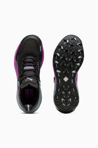 PRODUCT STORY Tackle any terrain in the sturdy confines of the Voyage NITRO™ 3. In this updated version of the model, we've tooled the trail shoe with a full NITROFOAM™ midsole for a lighter weight and more responsive ride when you're conquering distances. The PUMAGRIP ATR rubber outsole has been revamped with our PWRADAPT tech, allowing the lugs to move independently with the ground for supreme traction on multi-terrain. Our new, wider upper has been reinforced with PWRTAPE for support and protection, and the forefoot drain ports shed water like a champ. FEATURES & BENEFITS - The upper of the shoes is made with at least 20% recycled materials - NITROFOAM™: Advanced nitrogen-infused foam designed to provide superior responsiveness and cushioning in a lightweight package - PUMAGRIP ATR: Trail-ready performance rubber compound designed for traction on ice, mud, and unstable surfaces DETAILS - Style: 379618_10 - Color: PUMA Black-Pure Magenta-Modern Mint - Regular fit - Engineered mesh upper - Stack Height: 35mm/27mm - Heel-to-toe drop: 8mm - Weight: 292g - Recommended for: neutral pronators - Lining: 100% Textile; Outsole: 100% Rubber; Upper: 54.25% Textile, 45.75% Synthetic; Sockliner: 100% Textile