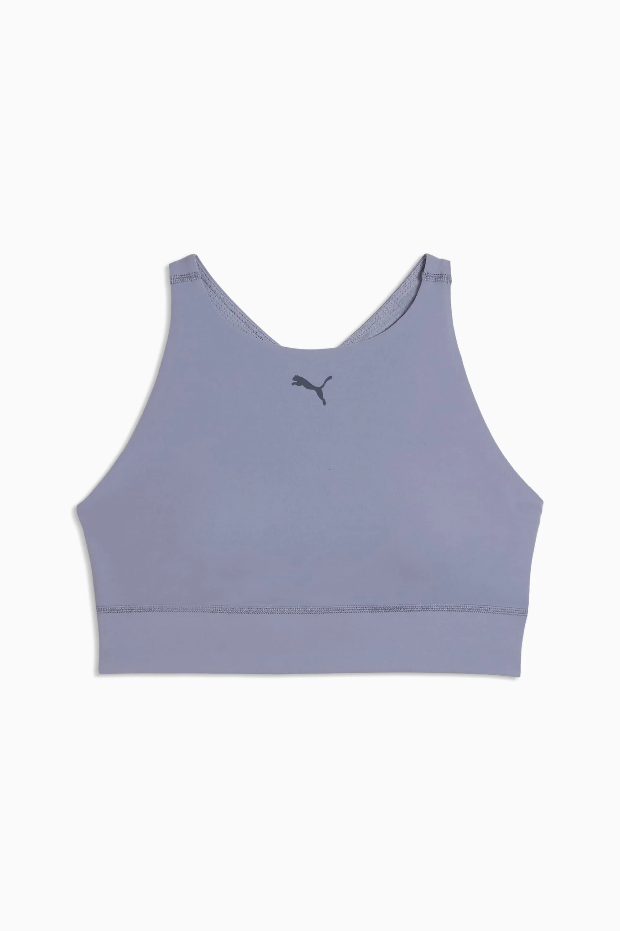 PRODUCT STORY Own your workout with high-neck coverage and medium-impact support. Made with SHAPELUXE for a smooth, form-fitting feel and LYCRA® ADAPTIV fiber for unrestricted movement. Removable pads and dryCELL technology keep you comfortable and dry, from studio sessions to daily errands. FEATURES & BENEFITS - dryCELL: Performance technology designed to wick moisture from the body and keep you free of sweat during exercise - LYCRA® ADAPTIV: Fibre in an innovative, engineered seamless construction delivers on fit and shape retention while providing form-fitting compression that moves with you - Made with at least 50% recycled materials. DETAILS - Style: 528138_65 - Color: Gray Sky - Fit: Tight - Main material: Interlock - High neck - Removable pads - Support: recommended for mid-impact workouts. MATERIAL INFORMATION - Lining: 94% Polyester, 6% Elastane - Shell: 82% Nylon, 18% Elastane - Middle Layer: 94% Polyester, 6% Elastane