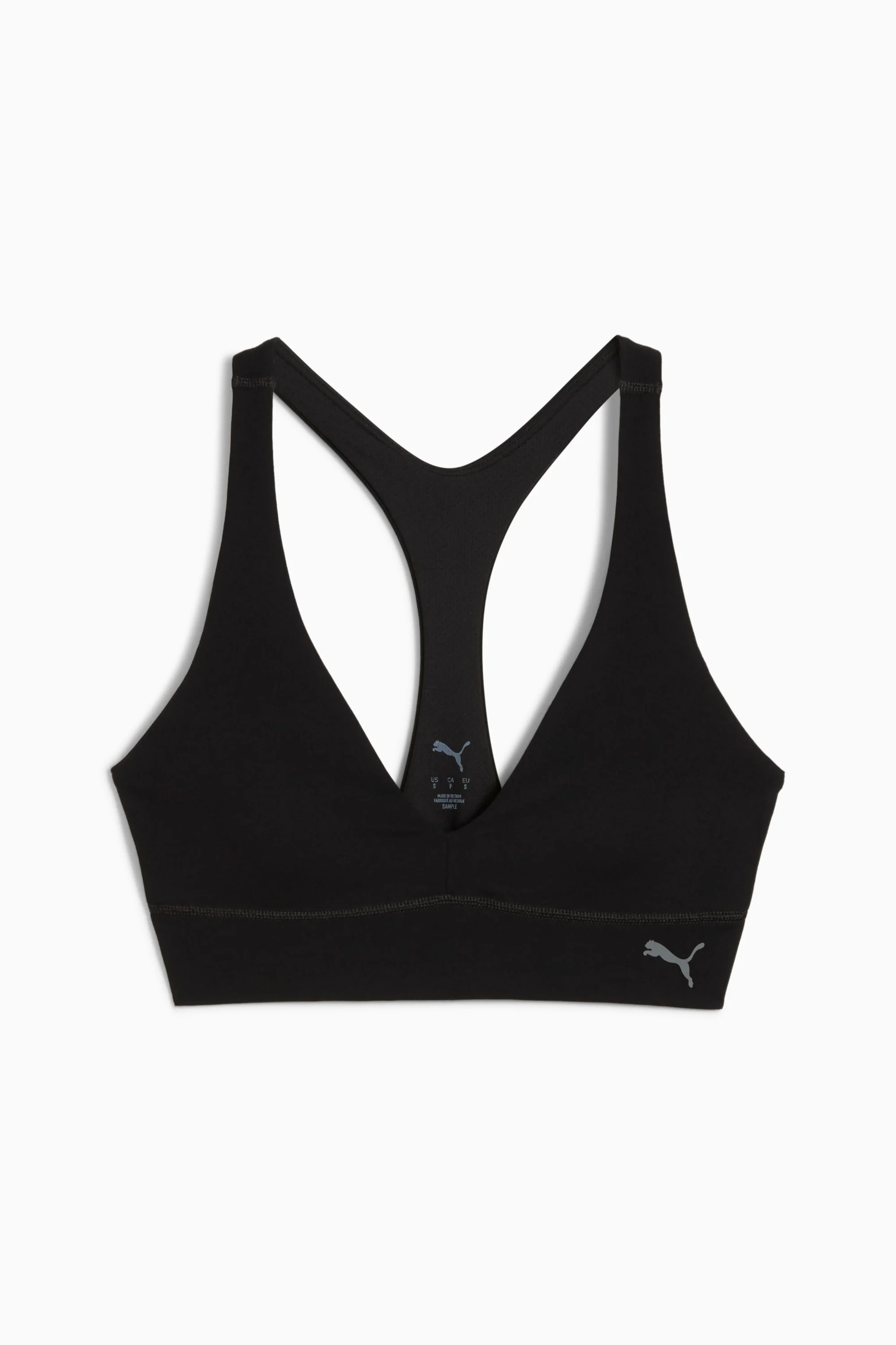 PRODUCT STORY The Short Description content provided is already written in a form of English that aligns with US English conventions. No changes are necessary. However, if you would like me to review it for any potential adjustments, here is the content again in US English: "Turn heads with a plunge neckline and seamless SHAPELUXE compression for a sculpted fit that moves with you. Featuring dryCELL to keep you fresh and removable pads for custom comfort. Perfect for low-impact workouts or laid-back days." Let me know if you'd like me to refine it further! FEATURES & BENEFITS - dryCELL: Performance technology designed to wick moisture from the body and keep you free of sweat during exercise - Made with at least 50% recycled materials. DETAILS - Style: 527481_01 - Color: PUMA Black - Fit: Tight - Main material: Interlock - Plunge cut - Removable pads - Support: recommended for low-impact workouts. MATERIAL INFORMATION - Lining: 94% polyester, 6% elastane - Shell: 82% nylon, 18% elastane