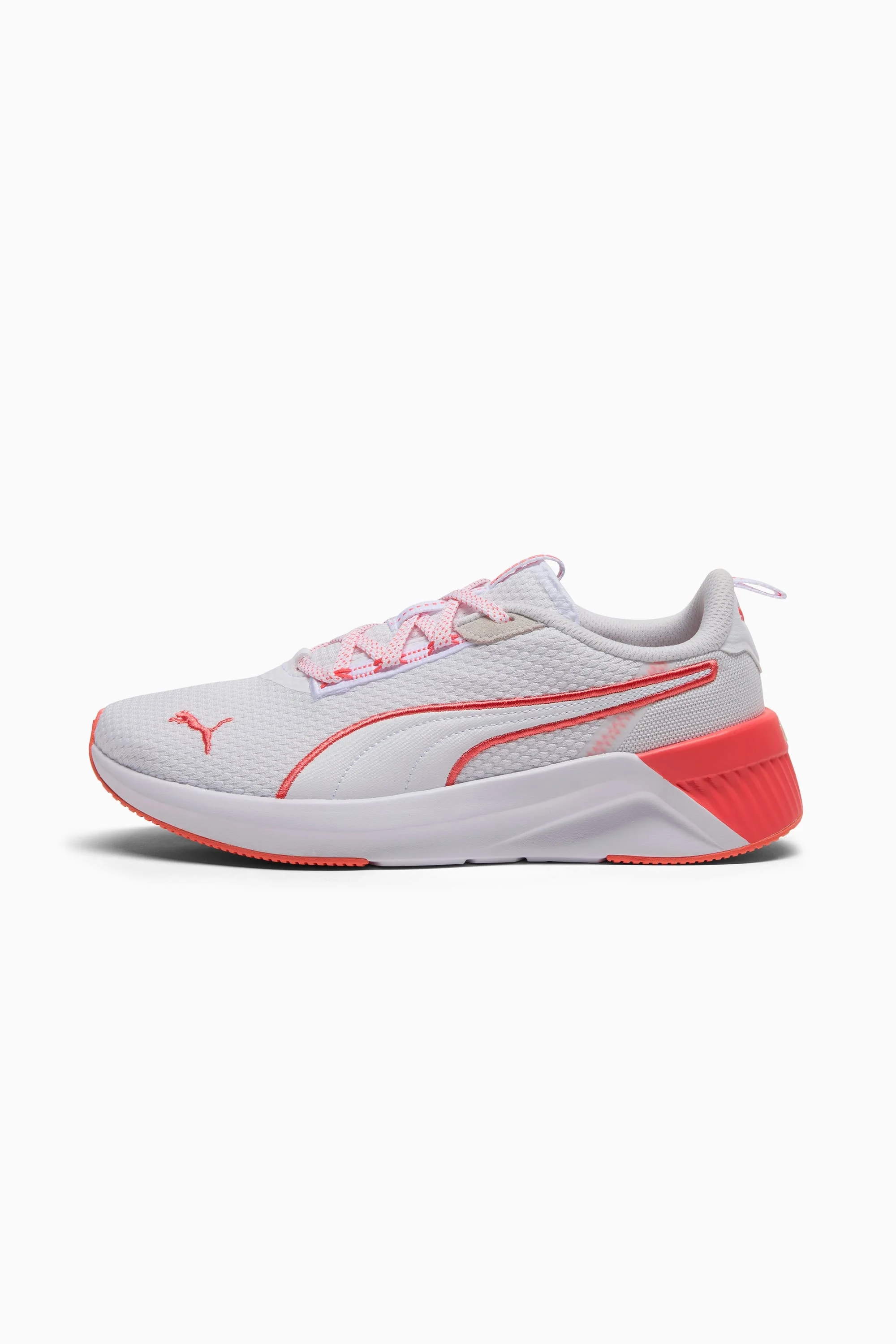 PRODUCT STORY Step into the future with our latest women's running silhouette. Featuring Softride cushioning and zoned rubber traction, it's designed for those who crave style and comfort. Perfect for your active lifestyle. FEATURES & BENEFITS - The upper of the shoes is made with at least 30% recycled materials - SOFTRIDE: Soft foam designed for all-day cushioning and comfort - SOFTFOAM+: Step-in comfort sockliner designed to provide soft cushioning thanks to its extra thick heel DETAILS - Style: 311100_16 - Color: PUMA White-Peach Frost - Lace closure - Low boot - Cushioning level: Medium - Zoned rubber traction - PUMA branding details MATERIAL INFORMATION - Midsole: 100% Synthetic - Sockliner: 100% Textile - Outsole: 62.45% Synthetic, 37.55% Rubber - Upper: 66.86% Textile, 30.46% Synthetic, 2.68% Leather - cow - Lining: 100% Textile