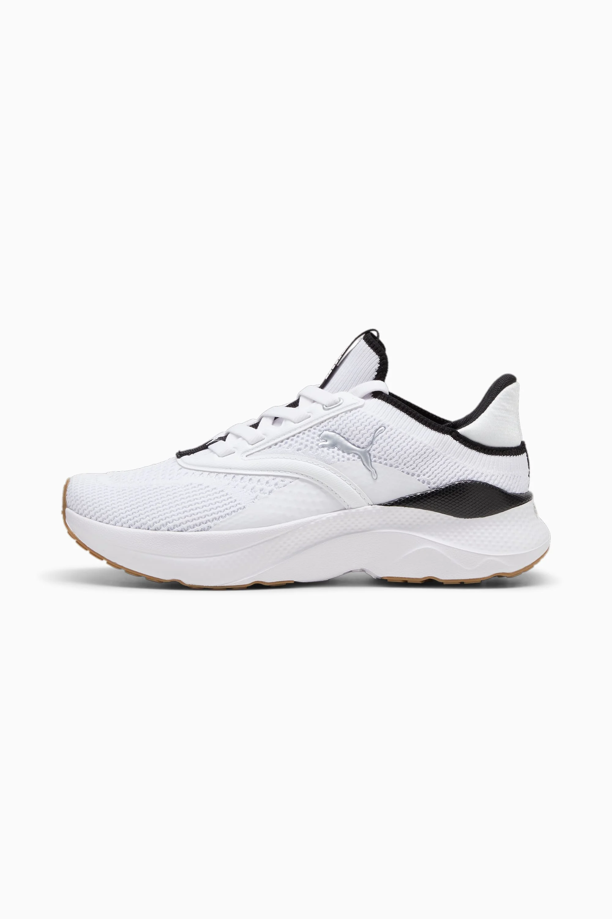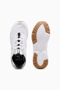 PRODUCT STORY SOFTRIDE Mayve utilizes our plush and comfortable SOFTRIDE foam and SOFTFOAM+ footbed, ensuring all-around comfort. This style features a clamshell construction, premium knitted upper material, mixed with premium finishes throughout the upper. With a unique eyestay and deco-stitching, enjoy fashion without sacrificing comfort. It's all in the new SOFTRIDE Mayve running shoe. FEATURES & BENEFITS - The upper of the shoes is made with at least 20% recycled materials - SOFTFOAM+: Step-in comfort sockliner designed to provide soft cushioning thanks to its extra thick heel - SOFTRIDE: Soft foam designed for all-day cushioning and comfort DETAILS - Style: 310160_02 - Color: PUMA White-PUMA Black-PUMA Silver - Lace closure - Zoned rubber traction - Heel-to-toe drop: 9mm - Surface type: Road running - Recommended for: neutral pronators MATERIAL INFORMATION - Midsole: 100% Synthetic - Sockliner: 100% Textile - Outsole: 59.10% Synthetic, 40.90% Rubber - Upper: 74.45% Textile, 25.55% Synthetic - Lining: 100% Textile