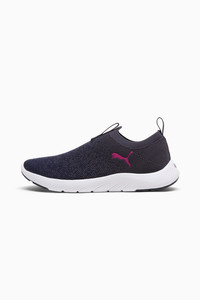 PRODUCT STORY The Softride Remi is our new, comfort-focused women's specific runner. It features PUMA's SOFTRIDE cushioning technology and other design features that enhance all-day comfort. The knit upper and slip-on construction mean getting them on and off is simple. FEATURES & BENEFITS - SOFTRIDE: Soft foam designed for all-day cushioning and comfort - SOFTFOAM+: Step-in comfort sockliner designed to provide soft cushioning thanks to its extra thick heel DETAILS - Style: 309834_16 - Color: New Navy-PUMA Navy-Magenta Gleam - Low-cut boot - Textile upper - Lace closure - Surface: road - Rounded toe - Zoned rubber outsole - Lining: Textile; Outsole: Other, Rubber; Midsole: Other; Upper: Textile; Sockliner: Textile, Other MATERIAL INFORMATION - Midsole: 100% Synthetic - Sockliner: 100% Textile - Outsole: 62.82% Synthetic, 37.18% Rubber - Upper: 99.39% Textile, 0.61% Synthetic - Lining: 100% Textile
