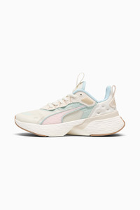 PRODUCT STORY Puma SOFTRIDE Sway features PUMA's proprietary SOFTRIDE EVA technology to offer all-day cushioning on a feminine upper that uses layered materials to create a style that's bold, active, and 100% you. FEATURES & BENEFITS - SOFTFOAM+: Step-in comfort sockliner designed to provide soft cushioning thanks to its extra thick heel - SOFTRIDE: Soft foam designed for all-day cushioning and comfort - The upper of the shoes is made with at least 20% recycled materials. DETAILS - Style: 310318_03 - Color: Alpine Snow-Turquoise Surf-Whisp Of Pink - Outsole: Synthetic and rubber - Midsole: SOFTRIDE foam - Upper: Layered, mixed materials - Jewel piece in the midsole - TPU cage - Webbing: Lock down fit - Closure: Laces - Rounded toe MATERIAL INFORMATION - Midsole: 100% Synthetic - Sockliner: 100% Textile - Outsole: 57.20% Synthetic, 42.80% Rubber - Upper: 55.49% Textile, 44.51% Synthetic - Lining: 100% Textile