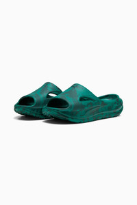 PRODUCT STORY Cushioning meets style with the SOFTRIDE ZeroG slides. Featuring a SOFTRIDE compound for superior comfort and a high midsole, these slides are perfect for your on-the-go lifestyle. Step up your footwear game with our new SOFTRIDE ZeroG slide! FEATURES & BENEFITS - SOFTRIDE: Soft foam designed for all-day cushioning and comfort DETAILS - Style: 400343_12 - Color: Wild Green-Green Terrain - Regular width - Synthetic upper - Slip on - Molded footbed - PUMA branding details MATERIAL INFORMATION - Outsole: 100% Synthetic - Upper: 100% Synthetic