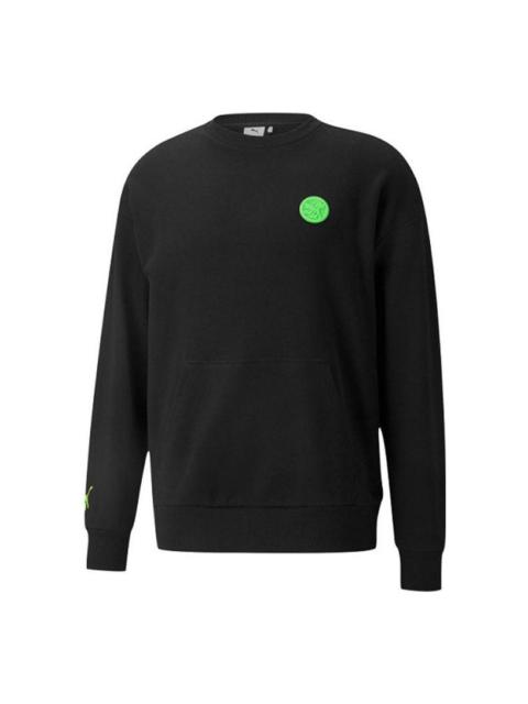 PUMA Solid Color Logo Round Neck Pullover Long Sleeves Unisex Green 532241-67