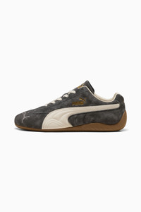 PRODUCT STORY The PUMA Speedcat has been an icon of racing culture and street style for decades. It was first introduced as an ultra-slim driving shoe designed to cut milliseconds off lap times. Over time, it evolved into a sleek streetwear staple spotted on the streets of global fashion capitals. Its story continues to evolve, embraced by trendsetters and pace-setters of every generation. DETAILS - Style: 405407_03 - Color: Cast Iron-Alpine Snow - Width: Regular - Toe Type: Rounded - Fastener: Laces - Heel type: Flat - Lining: Textile - Outsole: Rubber MATERIAL INFORMATION - Sockliner: 100% Textile - Outsole: 100% Rubber - Upper: 97.82% Leather - cow, 2.18% Textile - Lining: 73.08% Textile, 26.92% Synthetic