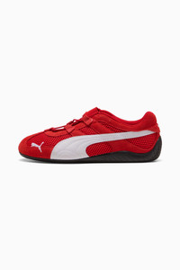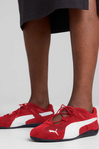 PRODUCT STORY An icon of racing culture, the PUMA Speedcat has been synonymous with speed, precision, and unparalleled performance for over 25 years. It originated as a fireproof Formula 1® footwear style, but over the decades it found itself on a new circuit – transcending the tracks of Monaco for the streets of global fashion capitals. Closely inspired by the original, the Speedcat Go offers a more breathable design with mesh on the upper and lace details. Own the low-profile trend with the most iconic silhouette in the world of Motorsport. DETAILS - Style: 403589_02 - Color: For All Time Red-PUMA White - Regular width - Suede upper - Lace closure - Mesh upper - Mesh lining - Rubber outsole - PUMA branding details MATERIAL INFORMATION - Sockliner: 100% Textile - Outsole: 100% Rubber - Upper: 68.94% Leather - cow, 31.06% Textile - Lining: 100% Textile