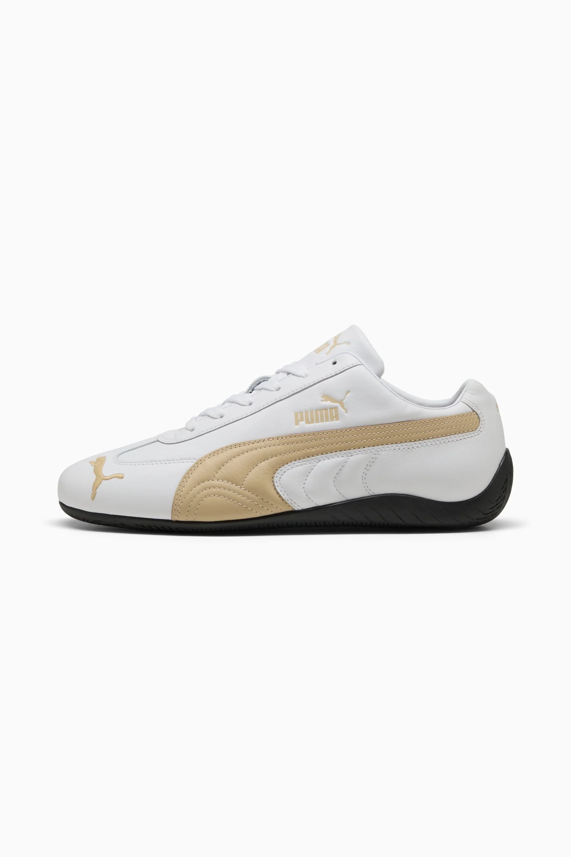 PRODUCT STORY The iconic Speedcat is reborn for the streets. Premium leather and bold design fuse motorsport heritage with modern style. Painted and debossed branding provides unmistakeable attitude underfoot, while an OrthoLite® sockliner ensures all-day comfort for those always on the go. DETAILS - Style: 401603_01 - Color: PUMA White-Toasted Almond - Regular fit - Leather upper - Rubber tooling on heel - OrthoLite® textile sockliner - PUMA branding details MATERIAL INFORMATION - Midsole: 100% n/a - Sockliner: 70.22% Synthetic, 29.78% Textile - Outsole: 100% Rubber - Upper: 99.07% Leather - calf, 0.51% Synthetic, 0.42% Textile - Lining: 70.22% Synthetic, 29.78% Textile