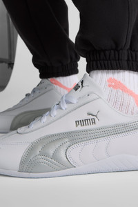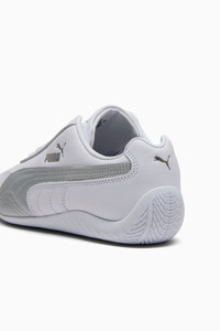 PRODUCT STORY A PUMA icon inspired by the speed of the racetrack. With a classic race shoe-inspired shape and sleek lines that look fast and bold. This version features a leather upper, suede PUMA Formstrip on the side and the signature rubber sole wrapping the heel. Own the low-profile trend with the Speedcat Leather Sneakers. DETAILS - Style: 403574_03 - Color: PUMA White-PUMA Silver - Regular width - Leather upper - Lace closure - OrthoLite® textile sockliner - Rubber sole wraps the heel - PUMA branding details MATERIAL INFORMATION - Sockliner: 100% Textile - Outsole: 100% Rubber - Upper: 97.82% Leather - cow, 2.18% Synthetic - Lining: 73.08% Textile, 26.92% Synthetic