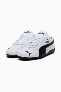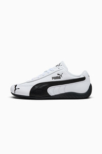 PRODUCT STORY A PUMA icon inspired by the speed of the racetrack. With a classic race shoe-inspired shape and sleek lines that look fast and bold. This version features a leather upper, suede PUMA Formstrip on the side and the signature rubber sole wrapping the heel. Own the low-profile trend with the Speedcat Leather Sneakers. DETAILS - Style: 403574_02 - Color: PUMA White-PUMA Black - Regular width - Leather upper - Lace closure - OrthoLite® textile sockliner - Rubber sole wraps the heel - PUMA branding details MATERIAL INFORMATION - Sockliner: 100% Textile - Outsole: 100% Rubber - Upper: 97.82% Leather - cow, 2.18% Synthetic - Lining: 73.08% Textile, 26.92% Synthetic