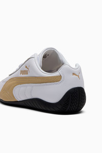 PRODUCT STORY A PUMA icon inspired by the speed of the racetrack. With a classic race shoe-inspired shape and sleek lines that look fast and bold. This version features a leather upper, suede PUMA Formstrip on the side and the signature rubber sole wrapping the heel. Own the low-profile trend with the Speedcat Leather Sneakers. DETAILS - Style: 403574_01 - Color: PUMA White-Toasted Almond - Regular width - Leather upper - Lace closure - OrthoLite® textile sockliner - Rubber sole wraps the heel - PUMA branding details MATERIAL INFORMATION - Sockliner: 100% Textile - Outsole: 100% Rubber - Upper: 97.82% Leather - cow, 2.18% Synthetic - Lining: 73.08% Textile, 26.92% Synthetic