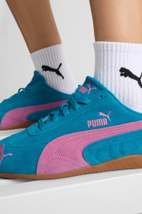 PRODUCT STORY An icon of racing culture, the PUMA Speedcat has been synonymous with speed, precision, and unparalleled performance for over 25 years. It originated as a fireproof Formula 1® footwear style, but over the decades it found itself on a new circuit – transcending the tracks of Monaco for the streets of global fashion capitals. Wrapped in soft suede and premium leather, this silhouette is reissued in its original red and black colorways with a new PUMA Cat Logo at the front. FEATURES & BENEFITS - IMEVA: PUMA's material for a lightweight and comfortable feel - PUMA's leather products support responsible manufacturing via the Leather Working Group. www.leatherworkinggroup.com DETAILS - Style: 400986_43 - Color: Tropical Blue-Poised Pink - Leather upper - Rubber midsole - Rubber outsole - Suede PUMA Formstrip - PUMA Cat embroidered on the toe